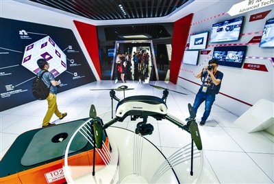 G20期间,记者在杭州海康威视数字技术股份有限公司展厅里拍摄公司新研制的工业级无人机(9月2日摄)。