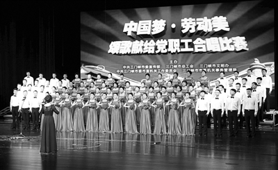 “中国梦·劳动美——颂歌献给党”职工合唱比赛日前在河南省三门峡市举行。14支来自该市各行各业的合唱团,以歌颂党、歌颂祖国、歌颂工人阶级伟大品格为主题,唱响时代主旋律,为喜迎国庆,纪念红军长征胜利80周年营造了欢乐祥和、向上向善的氛围。