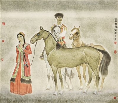 展览其中一个版块名为“中国美术家眼中的世界”,以中国画为主,题材集中于“一带一路”。中国文联副主席夏潮介绍,参展的中国美术家经常出国采风写生,尤其对“丝绸之路”沿线国家情有独钟,因而其作品以中国艺术语言讲述外国故事,注重笔墨韵味和意境营造。