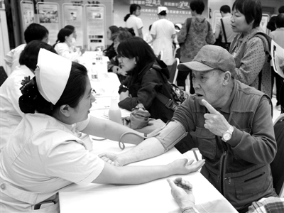 当日,北京大学第三医院和北京海淀区医院消化内科、普通外科、中医科、放射科的12名专家开展为社区居民义务诊疗活动。新华社记者 李欣摄