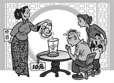 白开水10元一杯,就算能续杯吧,一个人能喝多少杯?明码标价就能违背市场规律,漫天要价、狮子大开口吗?时下,一些商家赚起钱来绝对是“亲爹都不认”“千方百计宰人”的节奏,尤其对外地游客,更是抱着“一锤子买卖”的心理,能宰多少就宰多少,绝不手软。“防人之心不可无”,消费者要想幸免,只能加倍小心。