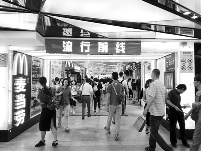 在广州,已开通的主要地铁站地下商场约有16个,如流行前线、地王广场、时尚天河、天河又一城、花城汇等。其中,流行前线是广州市内首家与地铁直接连通的大型商场,地处广州市中心。对很多“老广州”来说,这里都满载着年少时的回忆,包括流行前线在内的中山三路商圈曾是广州“潮人”的必逛之地。然而。在土生土长的广州人小李眼里,流行前线已不再“流行”。“现在看来就只剩交通方便这一点,已经没有什么能吸引人来的特别之处了。”