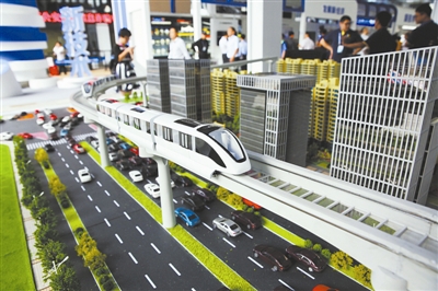 图为在深圳双创周主会场主题展示区展示的轻型跨座式单轨交通系统(10月12日摄)。 新华社记者 金立旺 摄