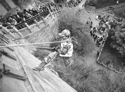 在武当山上,游客们常会看到身系安全绳、头戴安全帽的环卫工,在悬崖峭壁上忽上忽下,左右游走,捡拾被游客随手扔掉的垃圾,他们被称为“蜘蛛侠”。