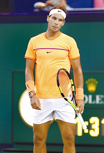 当日,在2016上海网球大师赛男单次轮比赛中,西班牙选手纳达尔以0比2不敌塞尔维亚选手特洛伊基,无缘晋级。新华社记者 凡军 摄