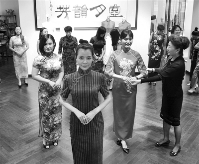10月11日,上海。她们不是礼仪小姐,也不是酒店服务员,她们是来自沪上公交系统的女司售人员,穿上海派旗袍,有模有样地学习传统礼仪文化。
