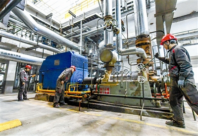 10月13日,威立雅(哈尔滨)热电有限公司工作人员在监测锅炉运行情况。