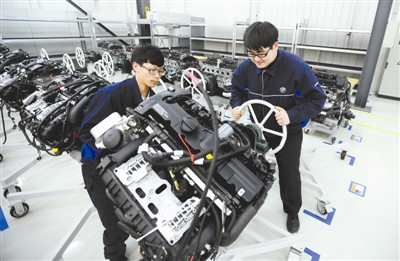 (图为在沈阳华晨宝马汽车公司职业教育实训场地,学生们正在学习。视觉中国 供图)