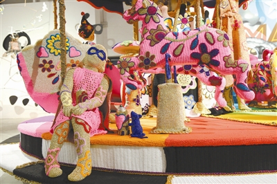 10月11日,德国德累斯顿,在纽约发展的波兰编织艺术家奥勒克推出了自己的最新作品,一座用毛线编织的旋转木马。奥勒克之前编织过雕塑、人,甚至是整栋房屋,她的作品曾在英、美、德、法和巴西、哥斯达黎加等国巡回展出。