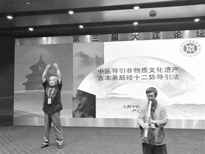 上海中医药大学教授严蔚冰,作为国家级非物质文化遗产代表性传承人,近年来一直在民间从事推广易筋经活动。