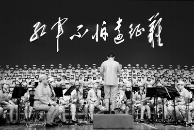 10月15日,由石家庄高新技术产业开发区公司供水排水公司管乐团、合唱团和河北省直老干部合唱团联合演出的纪念长征胜利80周年演唱会引来观众阵阵掌声。