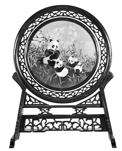 在安靖镇蜀绣公园,诸多企业和大师工作室已进驻其中,构成了极为丰富的蜀绣作品展馆,各类针法考究的蜀绣作品令人赞叹。贺静告诉记者,蜀绣最擅长表现鱼和熊猫,刻鳞针可以把鱼鳞绣出一片一片的层次感;熊猫绣作就连用针脚勾勒的绒毛都栩栩如生。在天府蜀绣展馆一角,一件透明塑料覆盖的蕾丝旗袍引起了记者注意,背部淡紫色的刺绣格外夺目,“蕾丝的伸缩属性令蜀绣在技术层面很难突破,但这是我们的一次大胆尝试,旨在让蜀绣走进大众视野,走进日常生活。”