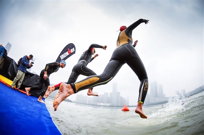 当日,2016世界铁人三项赛Ironman70.3合肥站正式开赛,共有来自58个国家和地区的1676名运动员报名参加本次比赛。新华社记者 郭晨 摄