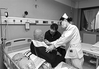 10月20日,在太原市人民医院病房,张风兰(中)在帮助护士为一名患者做口腔护理。46岁的张风兰是“山西护工”培训就业计划首批培训的护工之一。“十三五”期间,山西省卫生计生委将协调相关部门,完成5万名医疗护理员、3万名养老护理员以及2万名月嫂的培训就业任务,带动贫困家庭脱贫。 新华社记者 燕雁 摄