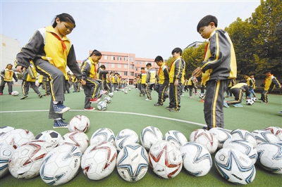 山东省枣庄市君山路小学将足球操、足球游戏、足球文化结合,自编了独具特色的“快闪足球”运动,让学生们在体育课或课余时间尽情享受足球运动的乐趣。