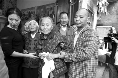 10月19日下午1时许,在广西隆安县南圩镇三宝村龙内屯,96岁的陈玉华老人迎来了自己盼望了70多年的儿女,这个因侵华日军肆虐而离散的家庭终于得以团聚。