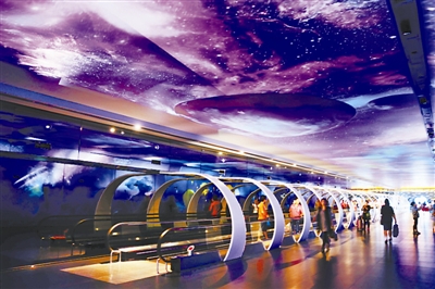 近日,广州白云国际机场的“时空隧道”建成开放。该“时空隧道”全长200多米,借助新科技打造“动静结合、人景结合、虚实结合”炫酷时空长廊,集公共服务、艺术展示、广告发布于一体,是一个融媒体模式大型艺术体验新空间。 视觉中国 供图