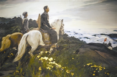 正在国家博物馆展出的油画作品《万里长征诗不尽》。