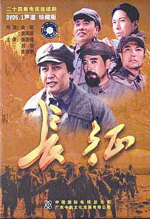《长征》同名电视剧还原了当时的历史背景,二十世纪三十年代,中国工农红军面临着大批国民党军队的围追堵截、大自然的艰难险阻以及内部错误思想和军事路线的干扰。电视剧采用一种创新的人物塑造方法,贴近人性,将人物刻画更加饱满,艺术而又真实地再现了长征精神。不同于过往,该剧用生活化和平民化视角突破以往人物塑造中的崇高形象,使历史人物更加贴近群众。
