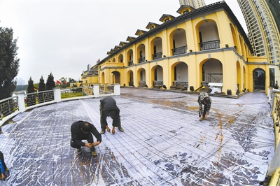 10月24日,工作人员在长沙裕湘纱厂早期建筑群开展保护性修缮施工。