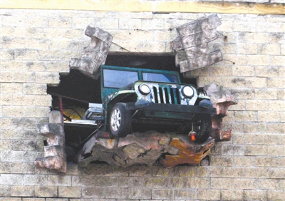近日,重庆南岸区白鹤路边,一辆吉普车从工厂厂房中“穿墙”而出,车头悬空,好似发生了车祸,十分震撼。据悉,这是该厂悬空设置的“车祸现场”,是为了提醒路过的驾驶员文明行驶,拒绝路怒症。东方IC 供图