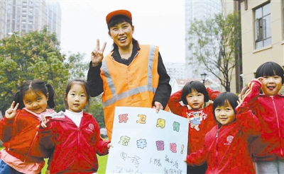 10月25日,安徽省合肥市。10月26日是环卫工人节,蜀山区笔架山街道学林轩社区联合辖区北大幼儿园开展“关注城市环境美容师,携手共创美好家园”活动。