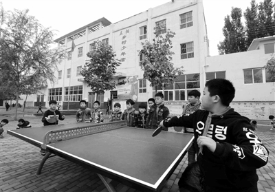 10月25日,学生们在河南省武陟县三阳乡乡村少年宫打乒乓球。