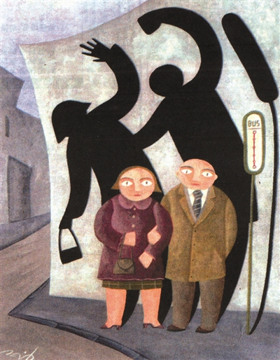 抨击家庭暴力的漫画甚多,表现手法各有高低。深入揭示矛盾内质,寓教于谐为上品,只是披露现象的画作必然肤浅。【波多黎各】亚佩兹