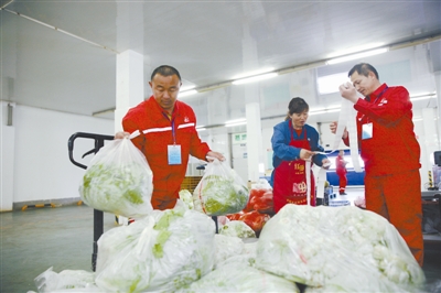 走上新岗位之后,一些不适应“症状”也表现出来,比如,大家接受不了现状;业务不熟悉,要在短短的时间内记住所要配送的400多家超市,128家食堂的位置;还要不停地弯腰去分拣蔬菜,一份一份地称重量;长期上夜班……