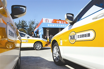 10月29日上午,北京交付投运了全球最大的出租车充换电站集群。由北汽新能源联手中石化、奥动新能源和上海电巴等机构打造的首批10座充换电站正式交付使用,覆盖北京中心城区、怀柔、顺义等8个区县。年内还将再交付40座充换电站,届时能够支撑6000台换电式出租车的换电需求,2017年末,将建成充换电站200座,支撑30000台纯电动汽车换电需求的规模。图为北汽EU220换电出租车进入北京石油亦庄博大路站进行换电。 胡庆明 摄