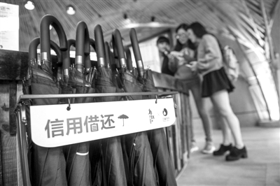 11月7日,浙江乌镇,伴随着世界互联网大会的永久落户,乌镇智慧旅游项目正在快速升级。目前,乌镇已全面接入蚂蚁金服“芝麻信用”借还服务,打造全国首个信用旅游景点。在桐乡市乌镇景区,游客正在尝试通过“芝麻信用”借用雨伞。