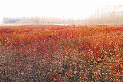 11月,初冬时节,位于河北省迁安市上金山院的红枫项目化产业基地,枫叶正红。基地内,10多名困难职工正在忙碌着,或在枫林内修整枝叶,或是在温室大棚里扦插树苗。