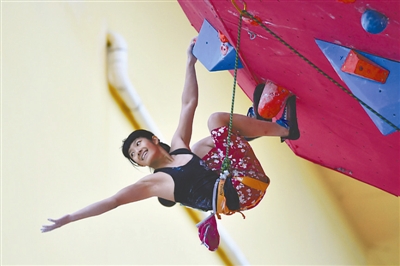 当日,2016国际攀联世界青年攀岩锦标赛举行难度攀岩决赛,分别决出男女6个组别的冠亚季军。 新华社记者 梁旭 摄