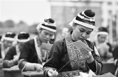 11月12日,广西三江侗族自治县举行刺绣大赛,200名侗家绣娘同场比拼“绣技”。三江侗绣是一种集纺织、印染、剪纸、刺绣于一体的传统工艺,绣品图案精美、色彩艳丽,具有极高的装饰和收藏价值。龚普康 摄/中新社