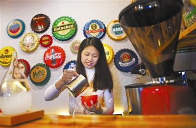 今年国庆期间,试营业的“猪栏咖啡屋”每日有1000元的营业额,这让魏星对未来充满信心。新华社记者 万象 摄