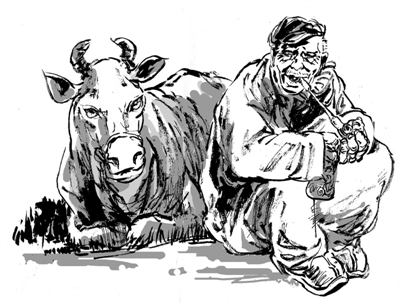 也许还有一点点事情要做,一点点而已。比如牵牵牛,晒晒土。进入冬天,牛圈里寒,乡下人就会把牛牵到向阳处,让牛晒太阳。一条缰绳,一根铁钎,再放上一筐草料,牛就晒在太阳里了。晒在太阳下的牛,低着头在吃草,饱了,就懒洋洋地躺在那儿反刍,像那些世故的哲人,在咀嚼精神的美餐。这个时候,干草的味道,牛的气息,就在冬日的寒冷中流溢着,好像是还没有洗却上一个季节的风尘。