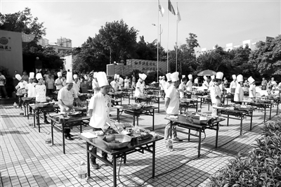 “我们以提高职工素质为重点,以技能竞赛、技术攻关、提合理化建议、岗位培训等为载体,按照‘练兵、培训、比武、晋级’四位一体模式,举行了一系列的劳动竞赛,评选出了一批‘江南能手’。”南岸区总工会负责人告诉笔者。“重庆市火锅调味职业技能大赛”只是众多劳动竞赛中的一项。据介绍,南岸区总工会通过搭建平台,开展技能比武,在电子信息产业等非公中小企业举办了“互联网+传统企业”转型升级技能大赛,提高中小企业创新能力和市场竞争力;在餐饮、医疗卫生等服务行业,承办了“重庆市火锅调味职业技能大赛”,举办了“南岸区火锅调味职业技能大赛”“南岸区基层卫生岗位练兵和技能竞赛”,提升了服务质量,让改革发展成果惠及职工群众;在印刷行业等高耗能企业和高污染排放企业,承办了“第二届重庆市印刷技能大赛”,引导职工为实现节能减排目标任务贡献智慧和力量。