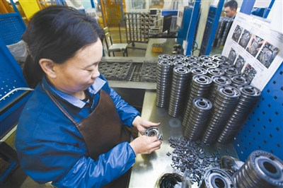 11月16日,河北香河县一齿轮生产企业工人为发动机变速箱齿轮安装弹簧、滑片。