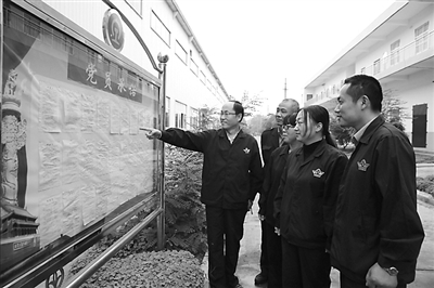 在“两学一做”学习教育中,郑州北车辆段党委在抓好广大党员学习的同时,注重学做结合,引导党员亮身份、践承诺、比贡献、保安全,赢得了职工群众的赞誉。图为该段职工在公开栏前观看党员承诺书。