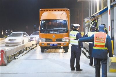 11月17日晚,在北京市房山区琉璃河进京检查站,北京市环保局工作人员对进京的柴油车辆进行尾气排放检查。 新华社记者 鞠焕宗 摄