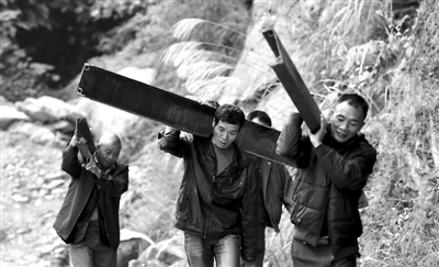 11月16日,在广西融水苗族自治县大浪镇上里村,工人为通屯水泥路建设搬运材料。