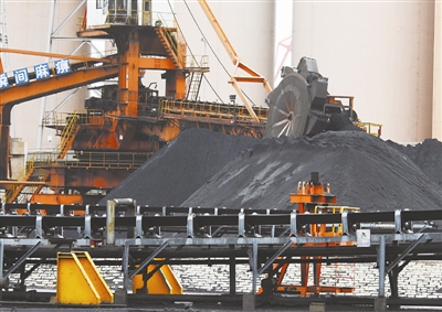 11月20日,在江苏连云港港口煤炭货场,大型机械在输送电煤。