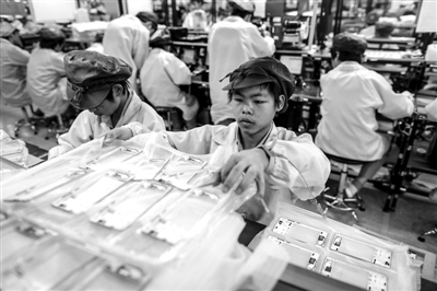 广东东莞大岭山镇金立工业园,流水线上的技校实习生身影。 视觉中国供图