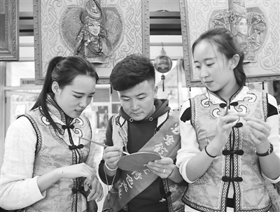 当日,内蒙古自治区展览馆组织32名文化志愿者走进呼和浩特一家皮画工厂,参观学习蒙古族皮画制作技艺,在亲身实践中感受草原文化的独特魅力。 新华社记者 邓华 摄