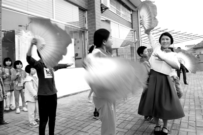 11月17日,孩子放学后在儿童托管中心老师的带领下学习舞蹈。