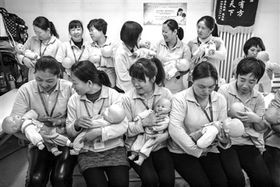 10月28日,北京,“阿姨大学”的月嫂培训课程。