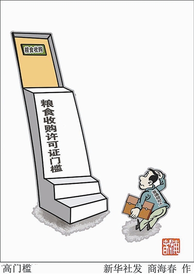 近日,国家粮食局出台《粮食收购资格审核管理办法》,明确规定农民、粮食经纪人、农贸市场粮食交易者等个体,今后从事粮食收购活动,不用再办理粮食收购资格,施行了十多年的粮食收购许可证制度被废止。“新华视点”记者深入基层采访发现,此前多年,全国各地广泛活跃着规模超过100万人的粮食经纪群体。他们虽然起到粮食收购主力军作用,大部分却因没有条件办理粮食收购许可证,长期处于不合法状态,既缺乏有效监管也面临法律风险。新华社发 商海春 作