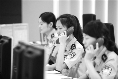 在沈阳市反信息诈骗中心,民警在紧张地工作。视觉中国 供图