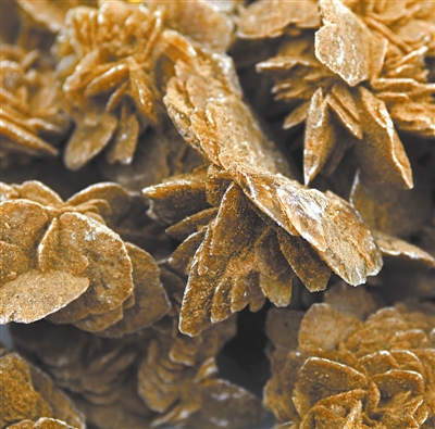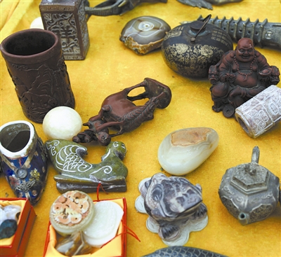 “这些东西基本上是机器雕刻或压制的。”李先生透露,现在市面上卖的贺兰石挂件和印章很多是由来自四川的苴却石加工而成。苴却石在图案和色泽上与贺兰石都极其相似,质地方面却有着天壤之别。苴却石运到银川的价格是1吨1000多元,贺兰石1吨则需要近3万元,个别好料按块卖,一块需要几千元。一方高品质贺兰石印章售价就达1000多元,而同样形制的苴却石印章,售价却在百元以下。“那些便宜的贺兰砚主要是用苴却石和达不到工艺要求的贺兰石料用机器雕刻、拼接粘贴出来的,普通消费者根本没办法识别真假。”李先生说。