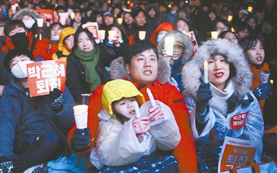 11月26日,在首尔市中心,韩国民众参加集会,要求朴槿惠总统对“亲信干政”事件负责并立即下台。新华社记者 姚琪琳 摄